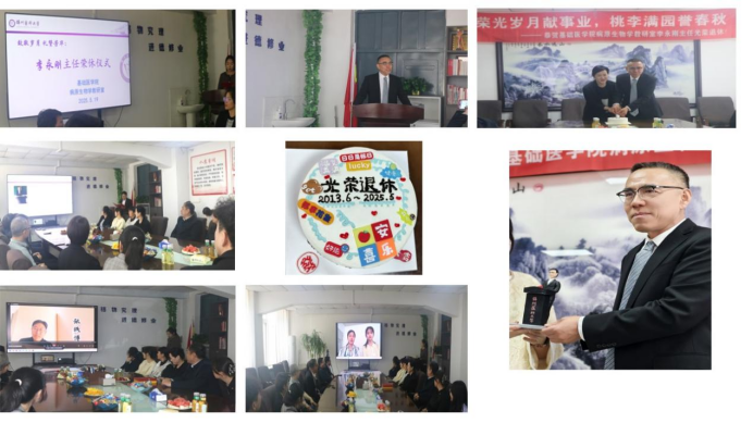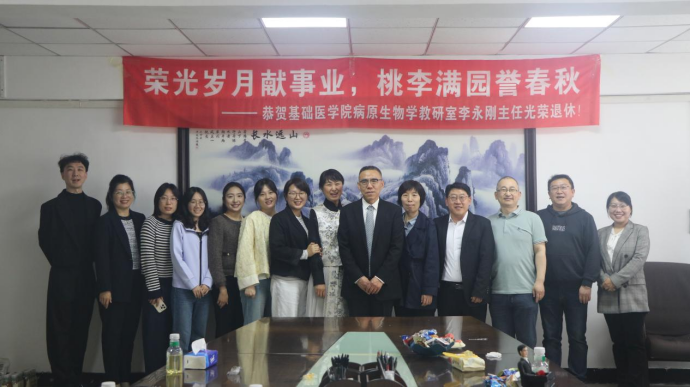 2025年5月19日下午,病原生物学教研室在必赢bwin线路检测中心会议室隆重举行李永刚主任荣休仪式。必赢bwin线路检测中心党政领导、教研室全体教师、研究生代表齐聚一堂,共同见证这一温馨而庄重的时刻,向李主任多年来的辛勤付出致以崇高敬意与诚挚祝福。